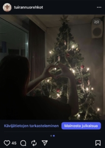 Oulun Tuiran seurakunnan vaikuttajanuoret tekivät viime vuonna nuorisotyön Instagramiin joulukalenterin eli sisältöä tuotettiin 24 luukkuun. Nuoret tekivät niihin muun muassa jumppavideoita ja meemejä sekä ottivat jouluvalmisteluihin liittyviä kuvia.